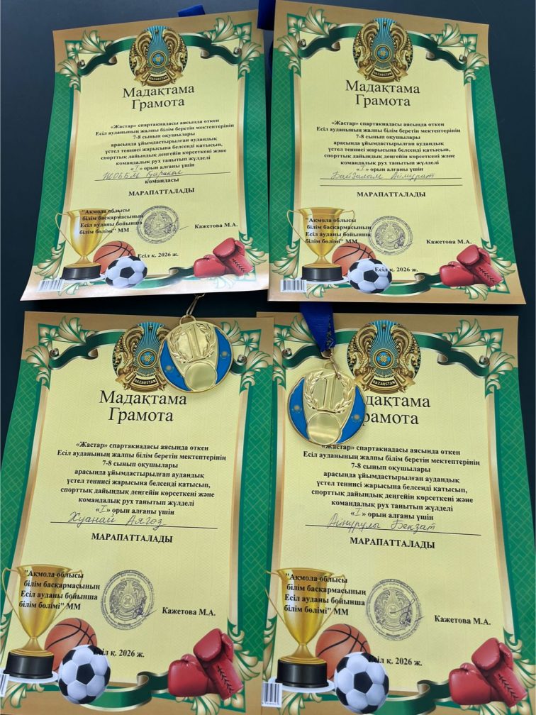 Оқушыларды жарысқа дайындап оларды жоғары нәтижеге қол жеткізуіне үлес қосқаны үшін Мектеп директоры Байғалым Аймұратқа және Дене шынықтыру пәні мұғалімі Халымхан Тілекбергенге алғыс білдіреміз!